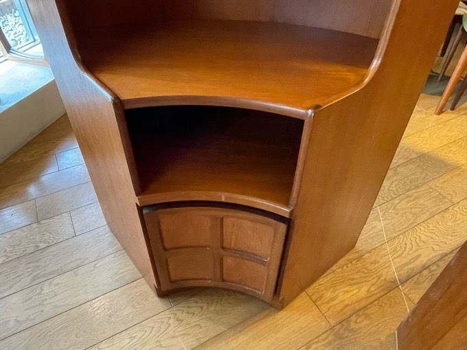 1960年代イギリス・Nathan社製 コーナーキャビネット ダブルデイでは久々に入荷しました! まず圧倒されるのがデザイン性。 チーク材のカーブが美しく、手の込んだ 職人技が光る逸品です。 3セットでの販売となります。 ~Nathan社~ 創業は1916年。良質なチーク材を使用し家具製造を行った イギリス大手メーカーのひとつ。