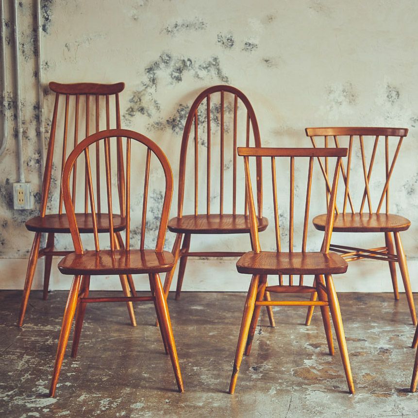 ウィンザーチェアのデザインを現代的にアレンジしたフォルム。 背もたれは、まっすぐなブナの木材を蒸気で熱してから曲げることで形作られています。 アーコールファンの間でも特に人気の高いチェアのひとつ。 背中をしっかりと支えてくれて、気持ちの良い座り心地です。 アンティークならではの味わい深い色合いが魅力の逸品。 丸みを帯びたフォルムとまっすぐ伸びたスポークが印象的な シンプルでどんなシーンにもマッチするアイテムです。 ~Ercol(アーコール)~ 1920年、家具デザイナーだったルシアン・アーコラーニが会社を設立。 スチームで湾曲させるウィンザーチェアの製造技術を完成させたほか、 ニレ材を自由自在に変形させる事も実現しました。 シンプルなデザインながら、木の家具ならではの温かみも併せ持った家具です。 50年代のモダニズムに影響を受けてデザインされているので、 現代家具と合わせやすいのも特徴です。