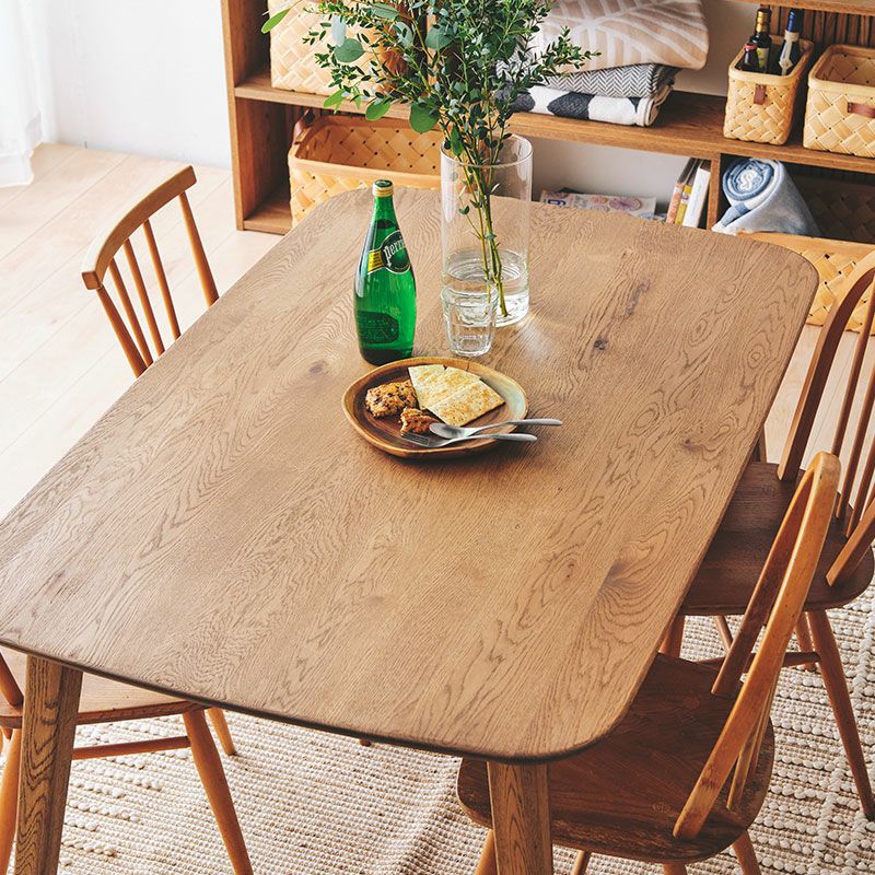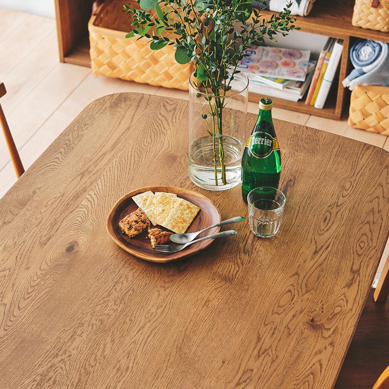 丸みを帯びた天板が優しい印象のダイニングテーブル「RADY(レディ)」の“木角脚”幅150cmです。ダブルデイオリジナルです。