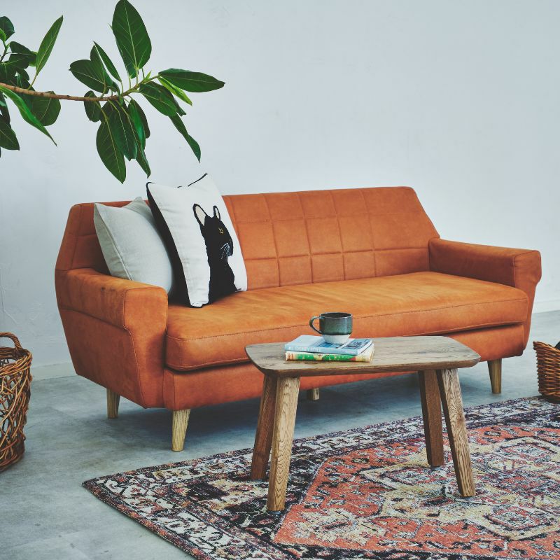ダブルデイオリジナルの家具シリーズ「RADY(レディ)」のソファ2.5人掛けです。ミッドセンチュリーモダンを意識した色とデザイン、コンパクトサイズが特徴です。