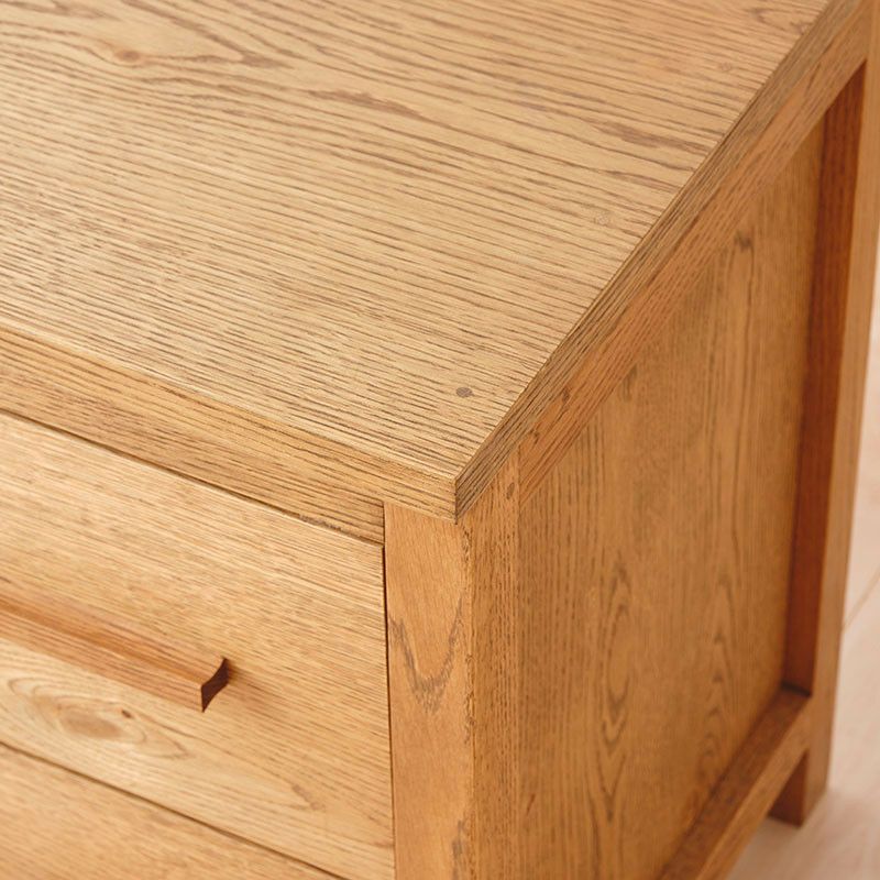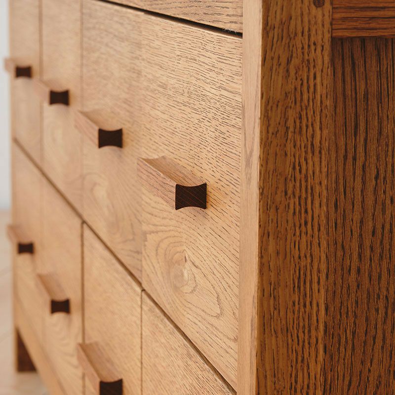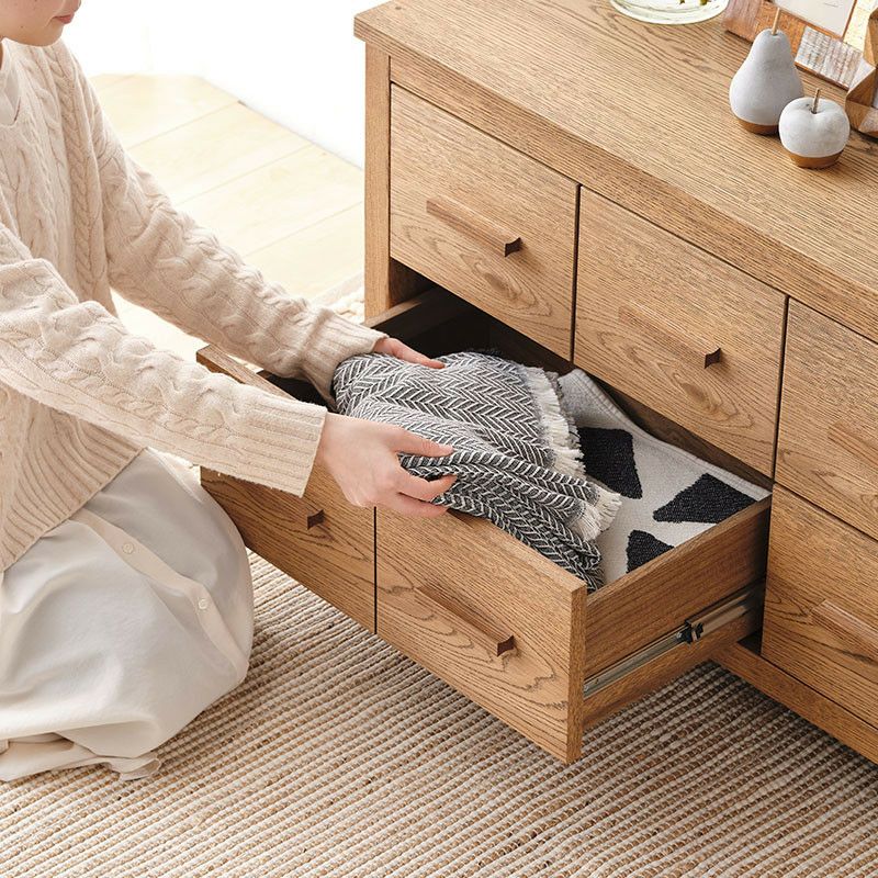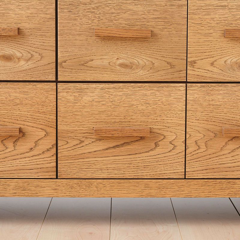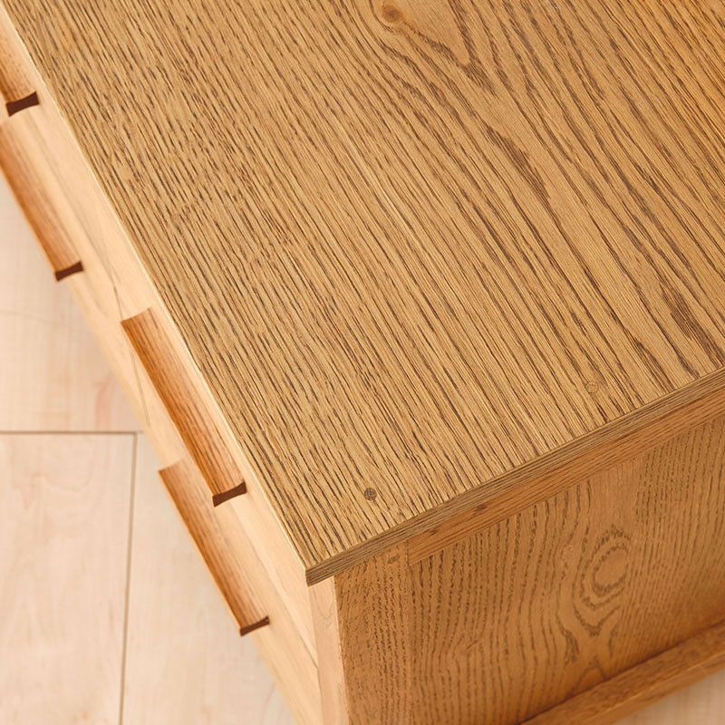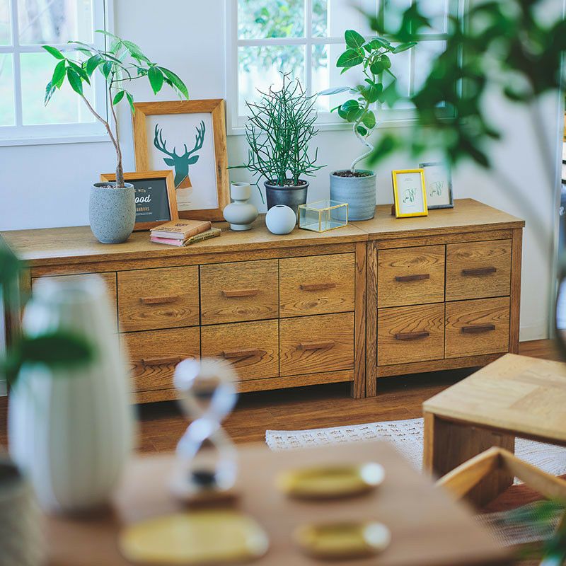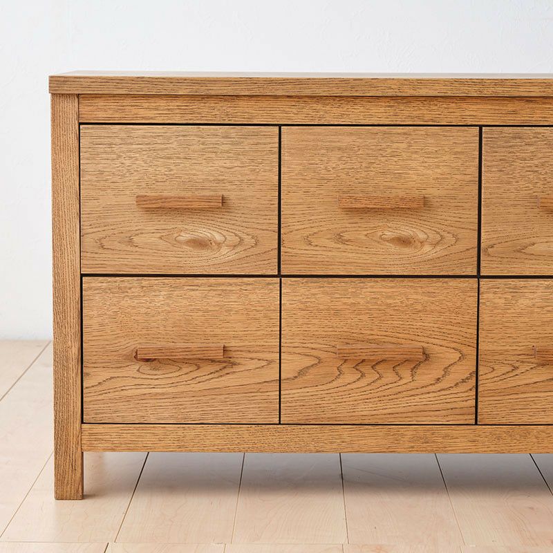 素材には、木目の美しさが楽しめるオーク材を使用しています。節の雰囲気や木目など、ひとつとして同じものはなく、唯一無二の美しさの木目が直線的なミニマルデザインのチェストを味わい深いものにしてくれます。