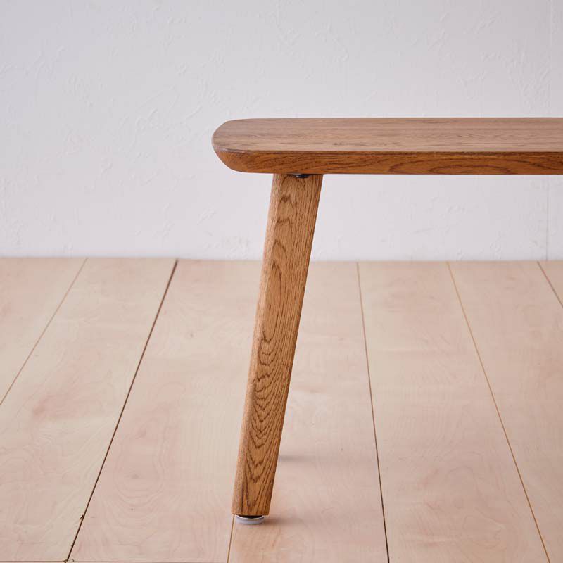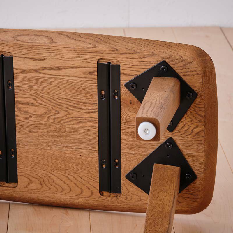 木の質感を楽しめるよう、木表面は塗膜を作らないオイル塗装で仕上げています。経年変化が出やすく、使い込む程に味わい深さが増していく仕上げです。ご自身で簡単にメンテナンスができるので、愛着をもって長くご使用いただけます。