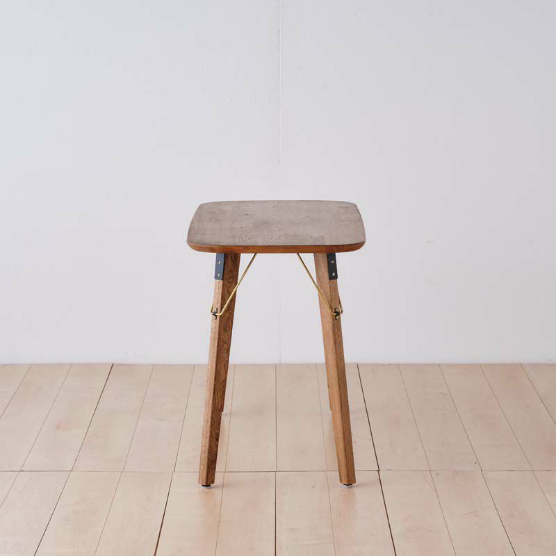 脚は、ウッド×真鍮×スチールの異素材ミックスでデザインされています。 丸みのある天板をピリッと引き締めてくれる存在です。