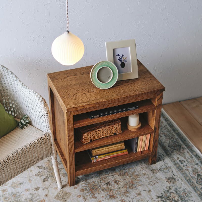 幅約60cmのコンパクトタイプです。ちょっとした空間に置きやすいのも魅力です。サイドテーブルとしても使えるサイズです。