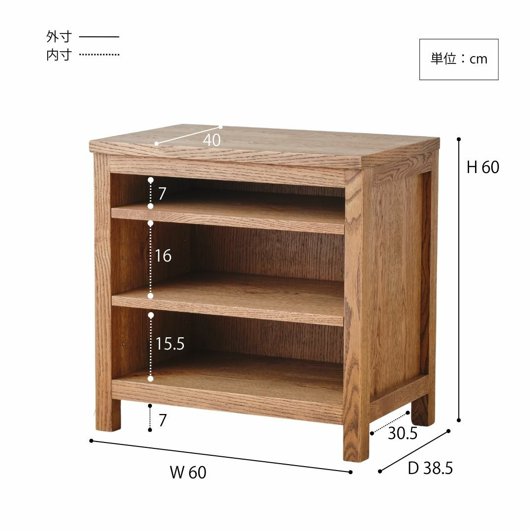 ダブルデイオリジナルの家具シリーズ「RADY」のオープンシェルフ〔幅60cm〕です。 オーク材の美しい木目を楽しめるコンパクトなオープンタイプのシェルフです。
