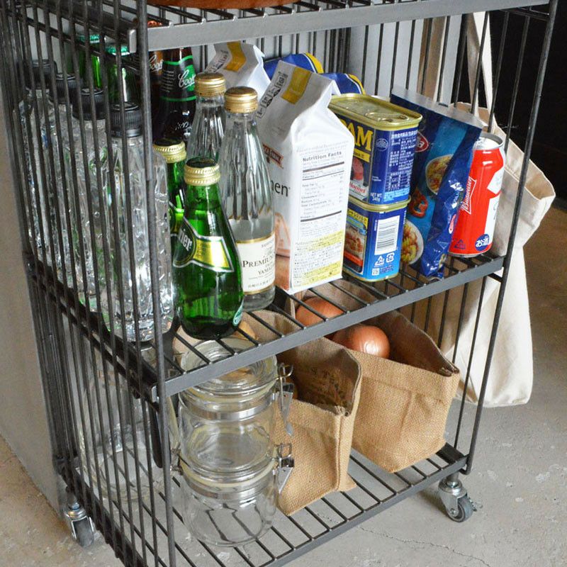 インダストリアルデザインのワイヤーワゴンです。<幅/レギュラー 棚/ダブル>のページです。