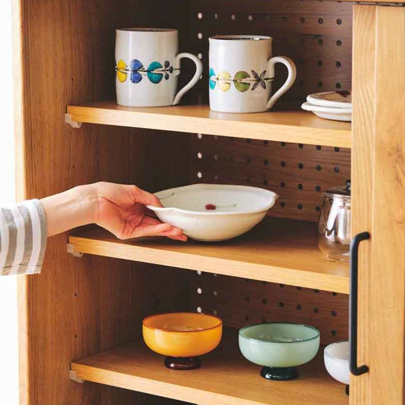 棚板の奥行は約29cm。奥行20cmの皿も収まる奥行です。