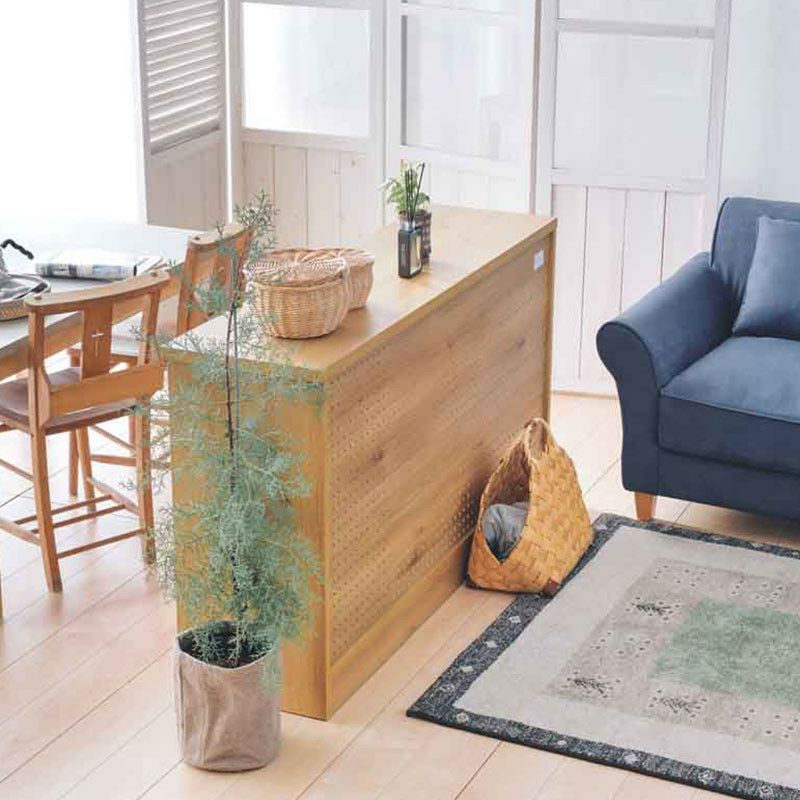 広い天板はディスプレイスペースにもなります。高さのあるフラワーベースなどを配置すると、より空間を仕切る雰囲気を醸し出すことができます。
