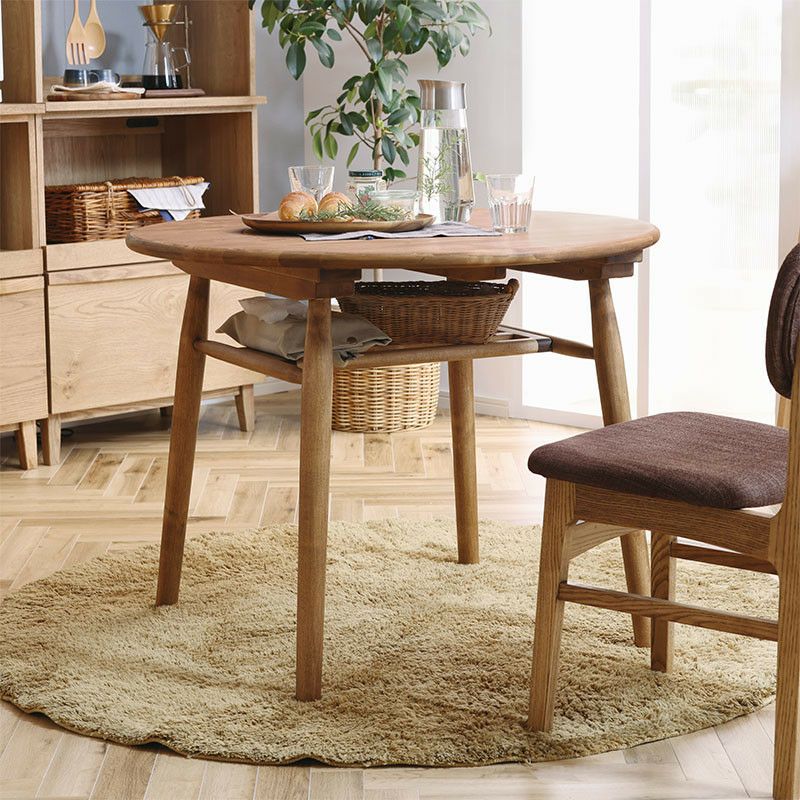 バーチ材を使用した円形ダイニングテーブル「LOGIE (ロジー)」です。丸みがあるデザインとナチュラルな色使いが優しい雰囲気のダイニングテーブルです。