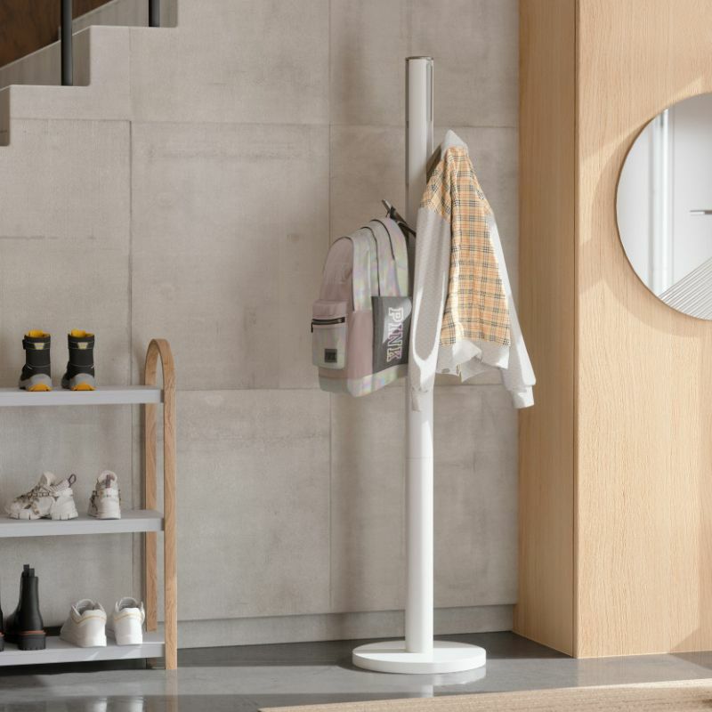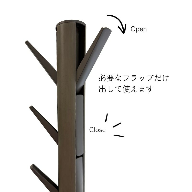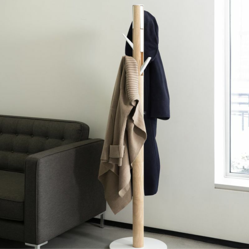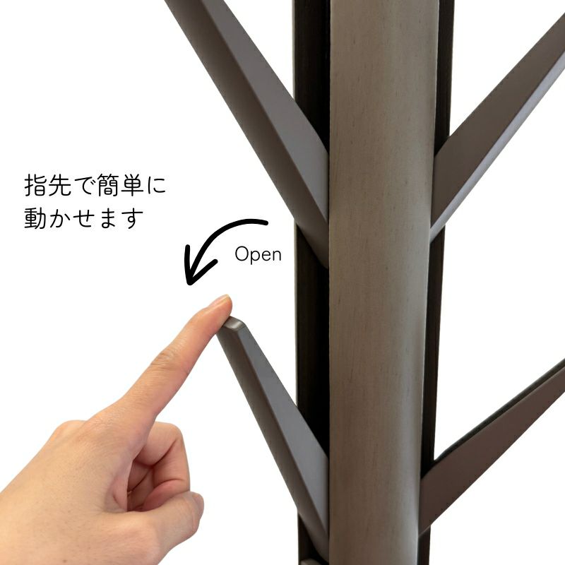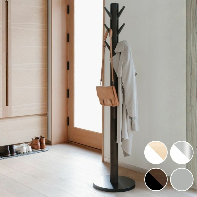 出し入れできる9個のフックがついたコートラックです。 不要なフックはポールに収納することができます。衣類やバッグなどをたくさん掛けておくことはもちろん、 掛けるものが少ないときは、スマートな見た目のコートラックとして部屋をすっきりと見せてくれます。