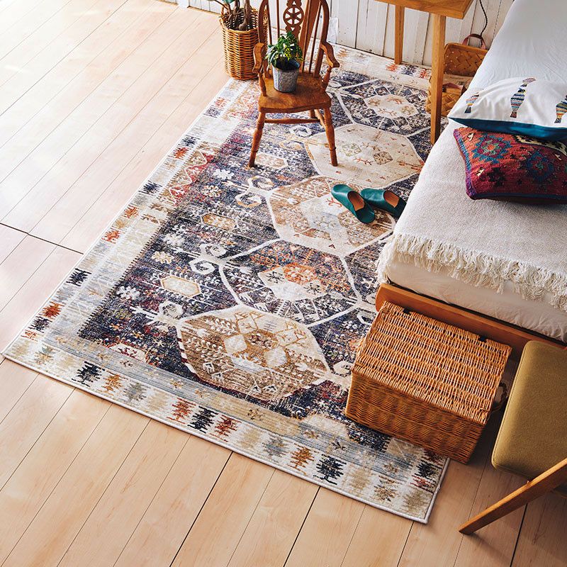 遊牧民が織る「トライバルラグ」のデザインをモチーフにしたラグです。使い込んだような風合いが魅力です。