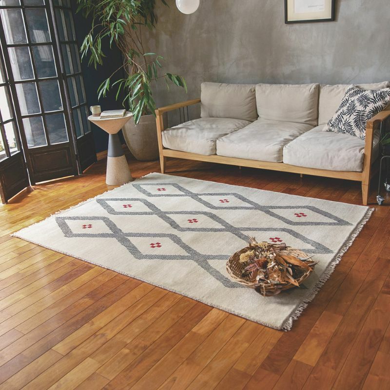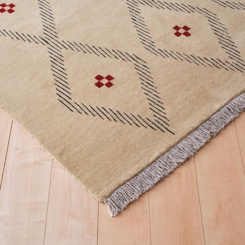 職人が丹精込めて手織りで仕上げています。丁寧な手仕事による上質な仕上がりと、 優れた耐久性を持つ本物の手織りラグです。