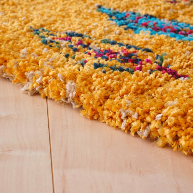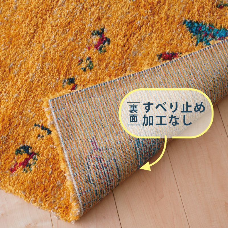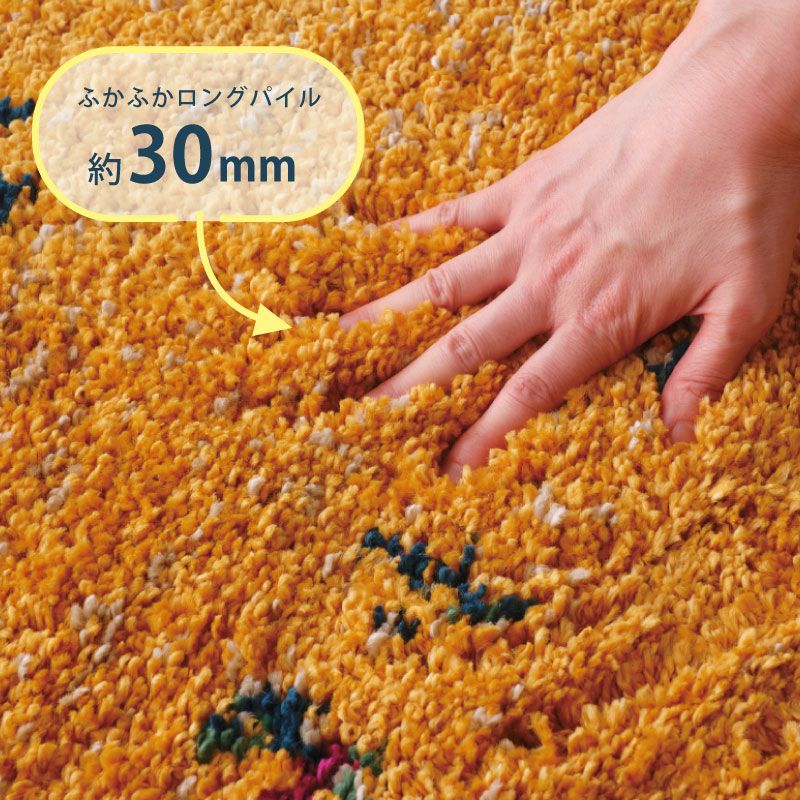 ●約30mmのロングパイルを使用し、ふかふかとしたやさしい手触りが楽しめます。パイルはヒートセット加工してあるのでウールのような柔らかさもプラスされています。 ラグに直接座っても心地よく、遊び毛が出にくいのでお手入れも簡単です。