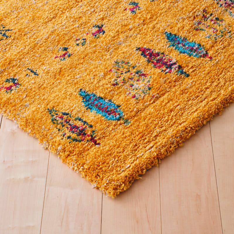 ふかふかのロングパイルでくつろぐ、素朴なデザインが映えるラグ