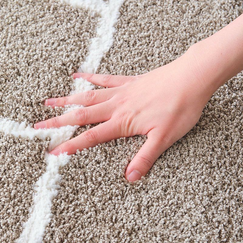 ■汚れた場合は中性洗剤を薄めたぬるま湯に雑巾をひたし固く絞ってラグをやさしく拭いて下さい。 その後、洗剤が入っていないぬるま湯にひたした雑巾で洗剤が残らないように拭き取ってください。