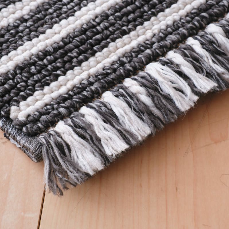 ●<ブラック><クリーム>の2色・各3サイズ展開。 用途やインテリアに合わせてお選びいただけます。 プクプクとした柔らかな手触りで、ラグの上に直接座っても快適です。 ウィルトン織ラグは、耐久性に優れ、遊び毛も出にくいため、お手入れも簡単です。