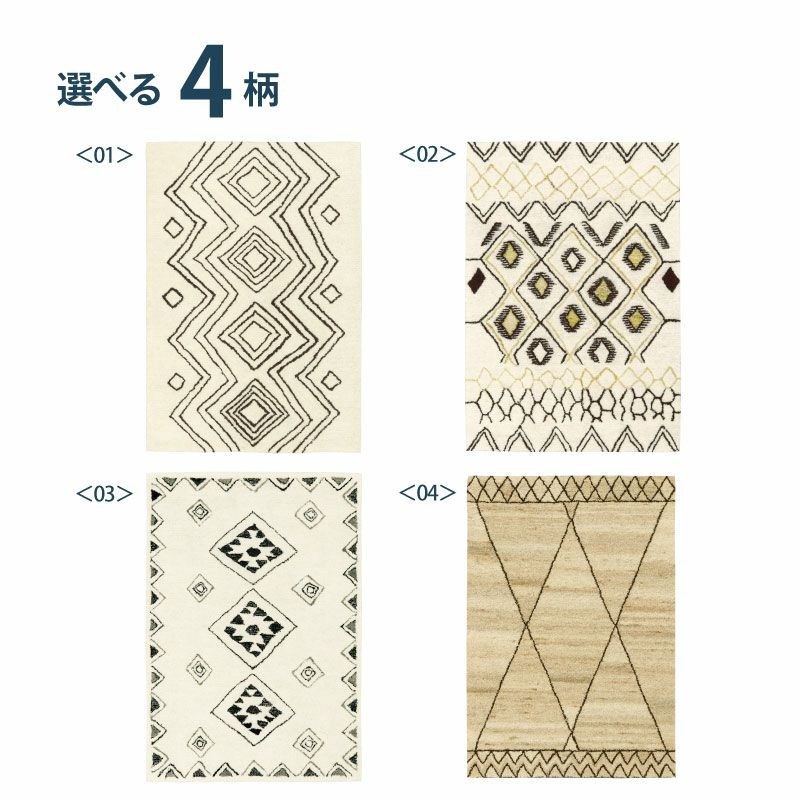 ベニワレン風の幾何学模様が印象的なラグ「ヌーベ」です。4柄2サイズから選べます。