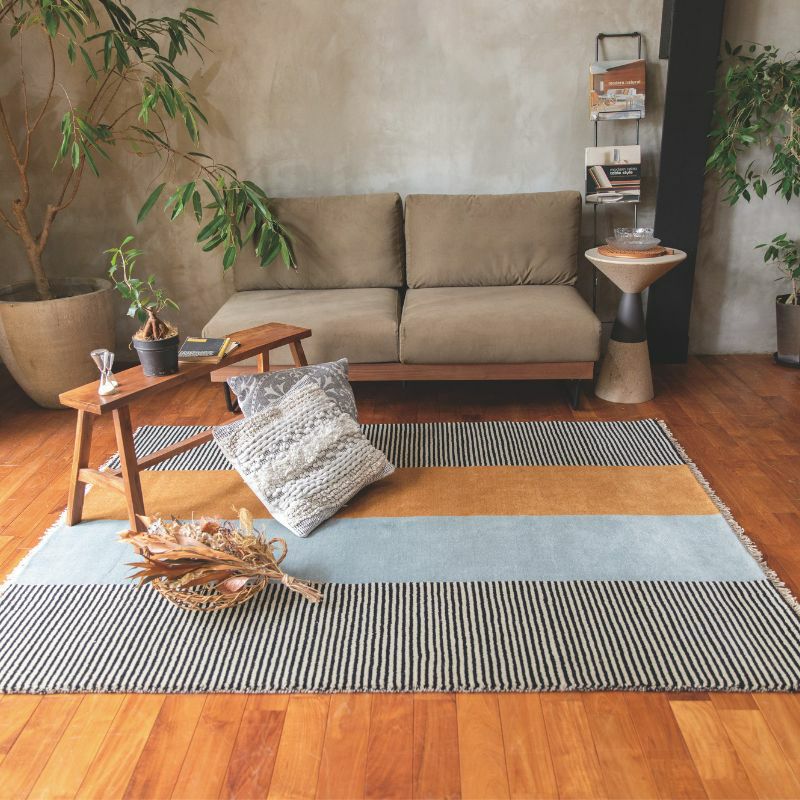 職人が丹精込めて手織りで仕上げています。丁寧な手仕事による上質な仕上がりと、 優れた耐久性を持つ本物の手織りラグです。