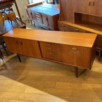 G-PLAN Brazilian(ブラジリアン)シリーズのサイドボード。 取手のデザインが特徴的でFrescoシリーズと同様に人気です。 幅2メートルを超えるサイズは壁面を一気にコーディネイトでき、 インテリアの主役になります。 G-PLANならではの風格を感じるサイドボードです。 ~G-PLAN (ジープラン)~ 英国の家具メーカー・E.GOMME社のブランド名です。 (北欧系デザインの家具シリーズの総称がG-PLAN) 英国で初めてスカンジナビアンスタイル(北欧デザイン)を取り入れ 1953年からスタートしたこのシリーズは、1960年にかけて英国で大流行しました。