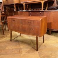 1960年代デンマーク製 チーク チェスト 北欧家具ならではの、木のぬくもり溢れるやさしいデザイン。 小さすぎず大きすぎないちょうど良いサイズ感で 今お使いの家具とも馴染んでくれます。