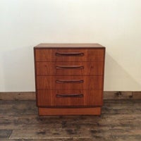 スッキリとシンプルなデザインのG-Planを代表するチェスト。 ベッドサイドやソファサイドにおすすめです。 小さいながらも存在感のある1台。 ~G-PLAN (ジープラン)~ 英国の家具メーカー・E.GOMME社のブランド名です。 (北欧系デザインの家具シリーズの総称がG-PLAN) 英国で初めてスカンジナビアンスタイル(北欧デザイン)を取り入れ 1953年からスタートしたこのシリーズは、1960年にかけて英国で大流行しました。