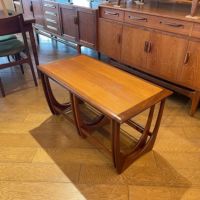 1960年代ジープランのダブルネストオブテーブル。 ジープランを代表するネストテーブルのロングサイズタイプ。 最近はあまり入荷しないレアアイテムです。 よりゆったりと、コーヒーテーブルとして ソファとのコーディネートに最適なサイズになっています。 北欧デザインを取り入れたシンプルでモダンなデザインは 様々なインテリアに溶け込み、末永くお使い頂けます。 ~ネストテーブルとは~ 同素材、統一されたデザインで大きさが少しずつ違う 小型のテーブルを入れ子にして重ねて置けるようにしたものを言います。 小さなテーブルを使わないときは、一番大きなテーブルの下に納めておけるので、 収納の場所をとりません。3台ひと組みにしたものが一般的です。 ~G-PLAN(ジープラン)~ デザイン性に優れ、英国のミッドセンチュリーを 象徴するプロダクトとして根強い人気のG-PLAN。 北欧系デザインの家具シリーズ「G-PLAN」は、 英国の家具メーカー・E..GOMME社のブラ ンド名です。 英国で初めてスカンジナビアンスタイル(北欧デザイン)を取り入れ 1953年からスタートしたこのシリーズは、1960年にかけて英国で大流行しました。