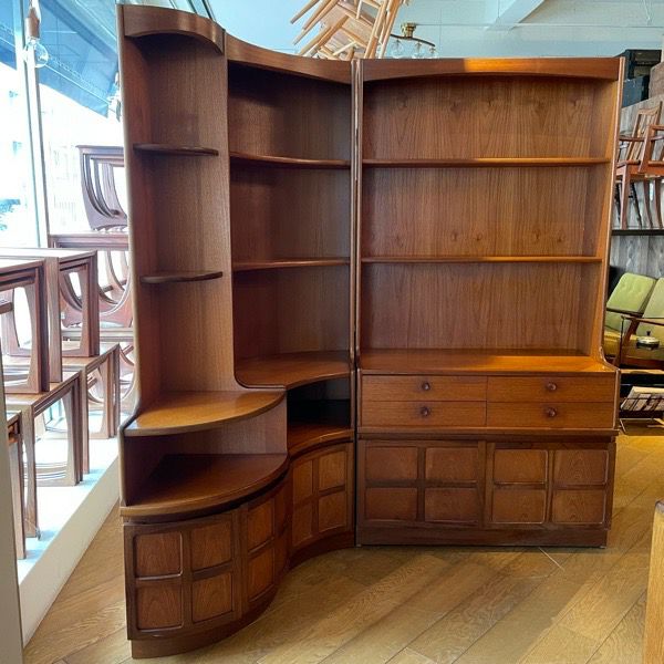 1960年代イギリス・Nathan社製 コーナーキャビネット ダブルデイでは久々に入荷しました! まず圧倒されるのがデザイン性。 チーク材のカーブが美しく、手の込んだ 職人技が光る逸品です。 3セットでの販売となります。 ~Nathan社~ 創業は1916年。良質なチーク材を使用し家具製造を行った イギリス大手メーカーのひとつ。
