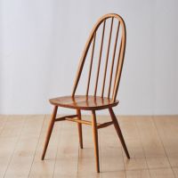 ウィンザーチェアのデザインを現代的にアレンジしたフォルム。 背もたれは、まっすぐなブナの木材を蒸気で熱してから曲げることで形作られています。 アーコールファンの間でも特に人気の高いチェアのひとつ。 背中をしっかりと支えてくれて、気持ちの良い座り心地です。 アンティークならではの味わい深い色合いが魅力の逸品。 丸みを帯びたフォルムとまっすぐ伸びたスポークが印象的な シンプルでどんなシーンにもマッチするアイテムです。 ~Ercol(アーコール)~ 1920年、家具デザイナーだったルシアン・アーコラーニが会社を設立。 スチームで湾曲させるウィンザーチェアの製造技術を完成させたほか、 ニレ材を自由自在に変形させる事も実現しました。 シンプルなデザインながら、木の家具ならではの温かみも併せ持った家具です。 50年代のモダニズムに影響を受けてデザインされているので、 現代家具と合わせやすいのも特徴です。