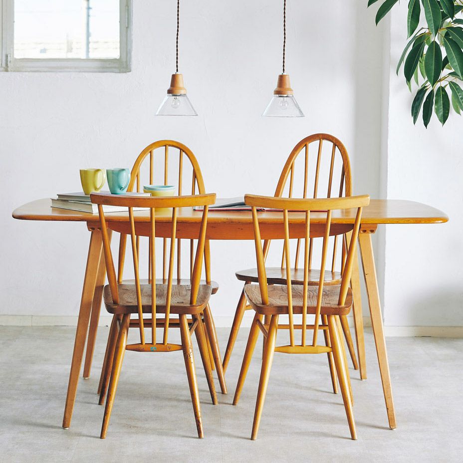 1960年代イギリスアーコール社のレクタングルダイニングテーブル。 アーコールならではの柔らかさを感じる丸みを帯びたフォルム。 独自の技術で作り出された薄くすっきりとした天板にスラリと伸びた長い脚。 シンプルなデザインの中に技術とこだわりが詰まったアーコールのテーブルは 使い込むほどに味わいが増し、飽きることなく末永くお使い頂ける逸品です。 ~Ercol(アーコール)~ 1920年、家具デザイナーだったルシアン・アーコラーニが会社を設立。 スチームで湾曲させるウィンザーチェアの製造技術を完成させたほか、 ニレ材を自由自在に変形させる事も実現しました。 シンプルなデザインながら、木の家具ならではの温かみも併せ持った家具です。 50年代のモダニズムに影響を受けてデザインされているので、 現代家具と合わせやすいのも特徴です。