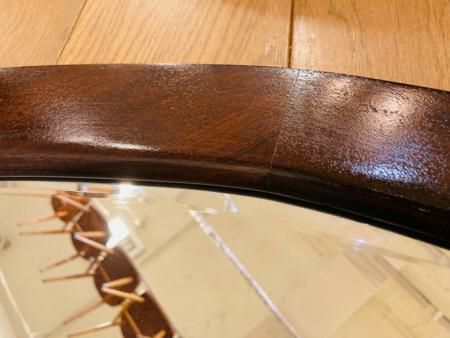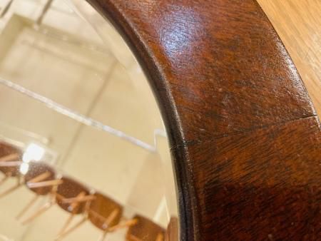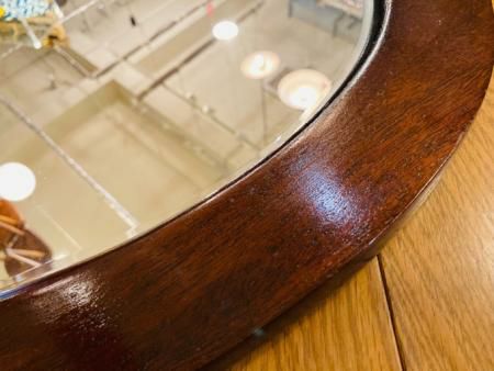 イギリス製のアンティークミラー 重厚感と品のある<マホガニーの深い色合いと、 シンプルなオーバル型のデザインはインテリアに合わせやすい一品です。 ※ビンテージ特有の細かい傷や汚れなどがございますが、そのままでのご配送となります。 ※細かいコンディションはお問合せ下さい。