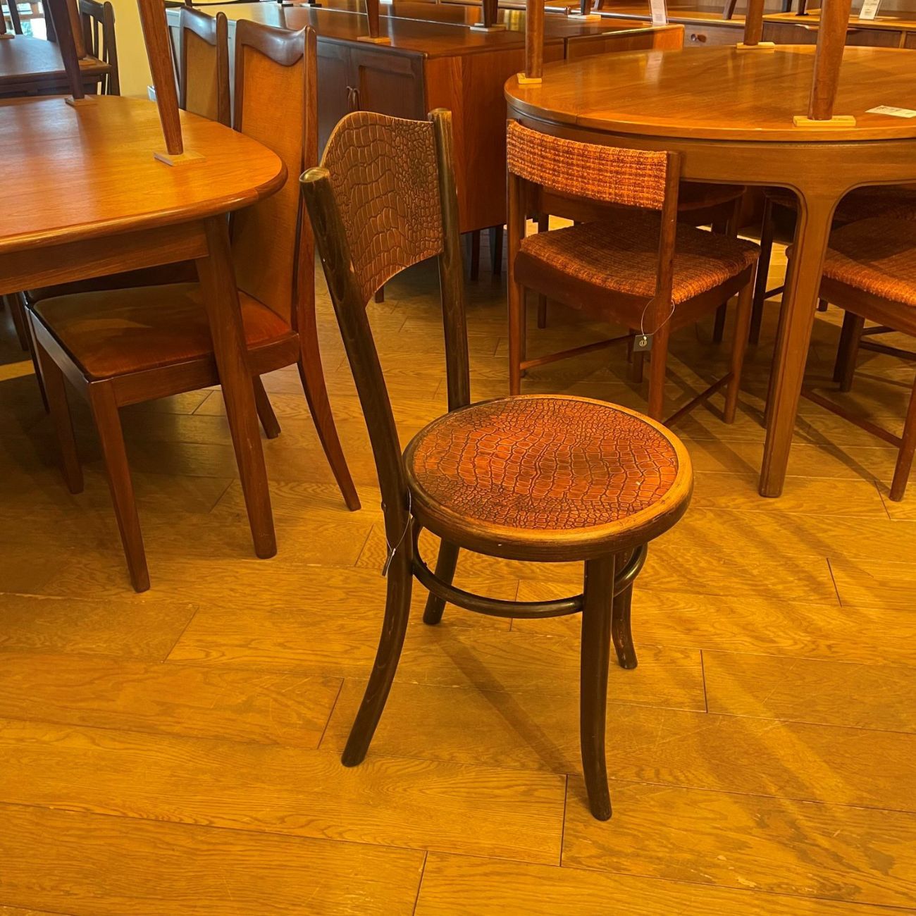 オーソドックスなベントウッドチェア。 シンプルなデザインなので飽きることなくお使い頂けるアイテムです。珍しいクロコの柄が施されたものが入荷しました!日常使いの椅子としてだけでなく、インテリアのディスプレイとしてお部屋に一脚だけ置いていても絵になる逸品です。