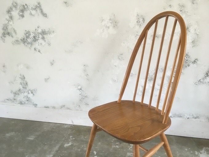 ウィンザーチェアのデザインを現代的にアレンジしたフォルム。 背もたれは、まっすぐなブナの木材を蒸気で熱してから曲げることで形作られています。 アーコールファンの間でも特に人気の高いチェアのひとつ。 背中をしっかりと支えてくれて、気持ちの良い座り心地です。 アンティークならではの味わい深い色合いが魅力の逸品。 丸みを帯びたフォルムとまっすぐ伸びたスポークが印象的な シンプルでどんなシーンにもマッチするアイテムです。 ~Ercol(アーコール)~ 1920年、家具デザイナーだったルシアン・アーコラーニが会社を設立。 スチームで湾曲させるウィンザーチェアの製造技術を完成させたほか、 ニレ材を自由自在に変形させる事も実現しました。 シンプルなデザインながら、木の家具ならではの温かみも併せ持った家具です。 50年代のモダニズムに影響を受けてデザインされているので、 現代家具と合わせやすいのも特徴です。