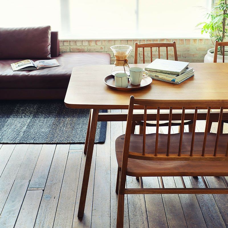 日本古来の製法を取り入れることによって、木の温もり感を最大限に引き出されたMINOシリーズは、ぜひシリーズでお使いいただきたい家具です。 ベンチと一緒に使いたいダイニングテーブルは3サイズ。チェアもご用意しています。お好みに合わせてお選びください。