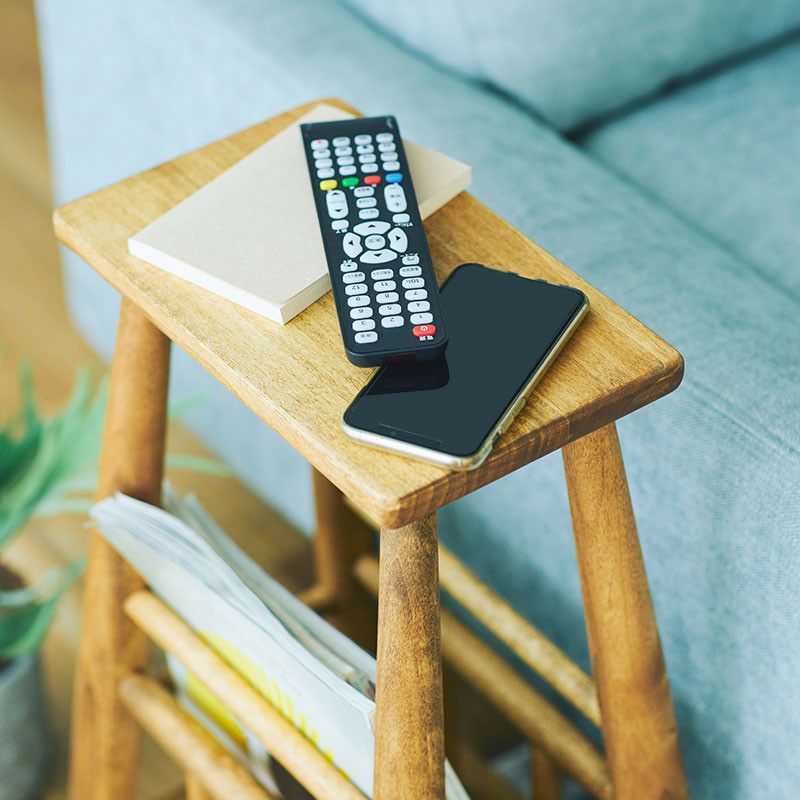 コンパクトサイズなのでソファ横や家具と家具の間にすっぽり収まります。天板は、物がのせやすいシンプルなスクエア形状です。