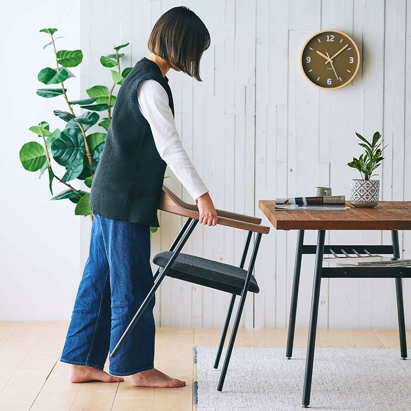 アーム部分が座面のやや外側に設置されており、座面を広く使えます。背もたれと肘かけ付きのダイニングチェアは独立性が高く、ダイニングテーブルでパーソナルエリアを確保しやすくなっています。