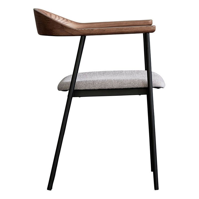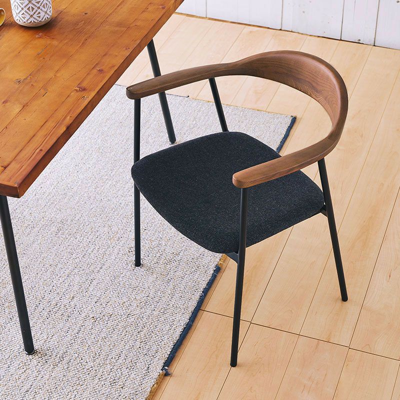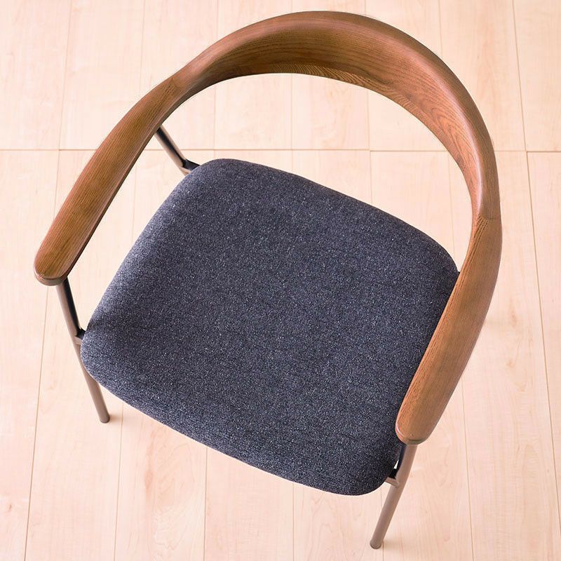 背もたれ部分の湾曲が背中に沿うのでホールド感をアップしてくれます。しっかりした肘かけがあり、自然と腕を置きたくなるように設計されています。ダイニングで心地よく過ごすのにぴったりです。