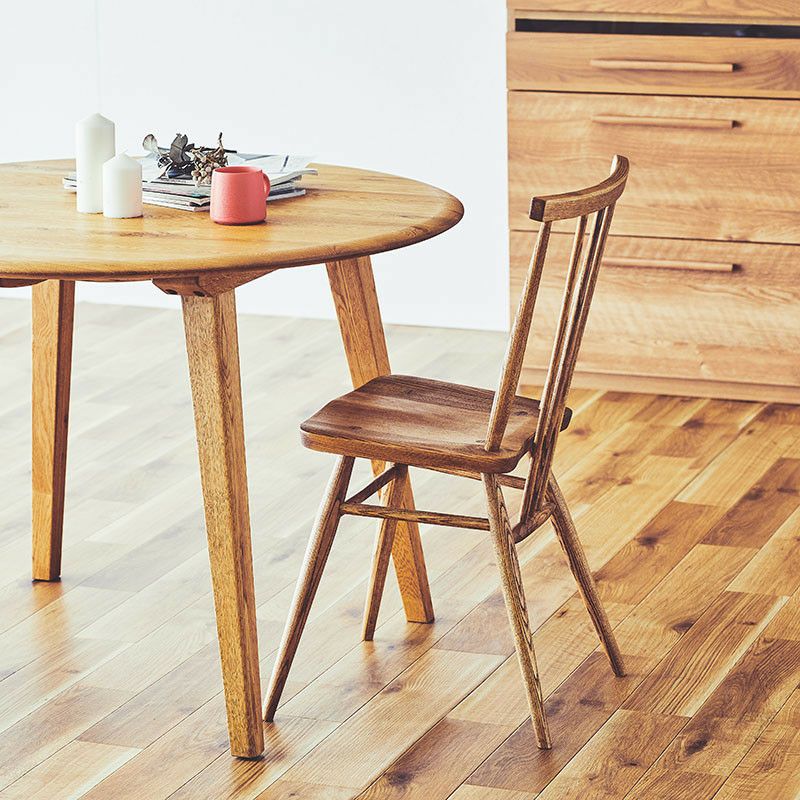 全体的に細く華奢な線は、すっきりとした空間を作り上げます。座面には、快適な座り心地のために彫りを入れています。