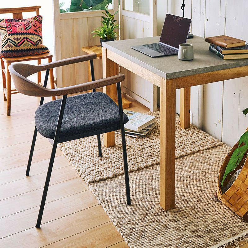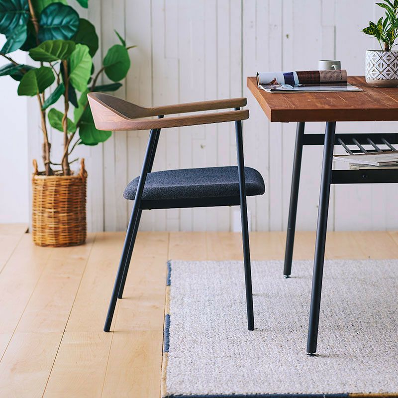 アーム部分が座面のやや外側に設置されており、座面を広く使えます。背もたれと肘かけ付きのダイニングチェアは独立性が高く、ダイニングテーブルでパーソナルエリアを確保しやすくなっています。