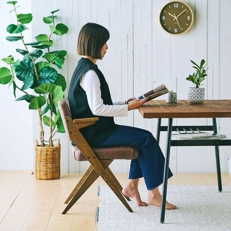 程よくインダストリアルな雰囲気を持っているので鉄脚を使ったメンズライクなダイニングテーブルともコーディネートしやすいデザインです。テーブルはシンプルにしてチェアをアクセントにするなど、自由に楽しむことができます。リモートワークのデスクチェアとしてもおすすめです。