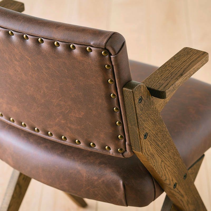 背もたれの背面には鋲が配されています。光沢が抑えられたゴールドの鋲は、インダストリアルな雰囲気をかもし出す、程よいアクセントになっています。