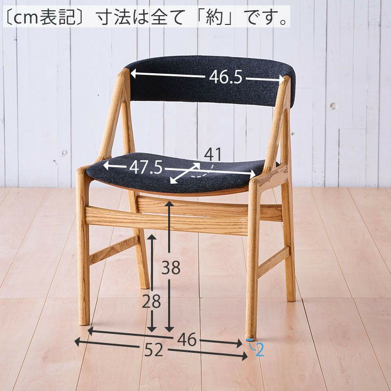 本体はアッシュ材の素材感を生かしたナチュラルな色使い、座面のファブリックには落ち着いたグレー系を採用しています。 北欧テイストのインテリアにピッタリのダイニングチェアです。