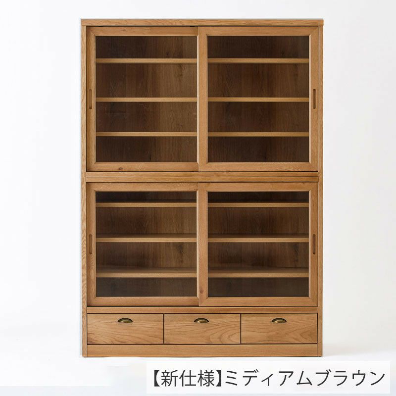 幅120cmでは収納力が物足りない場合は幅80cmとの2台使用がおすすめ。 同じ高さに仕上げているので2台並べても違和感なくお使いいただけます。