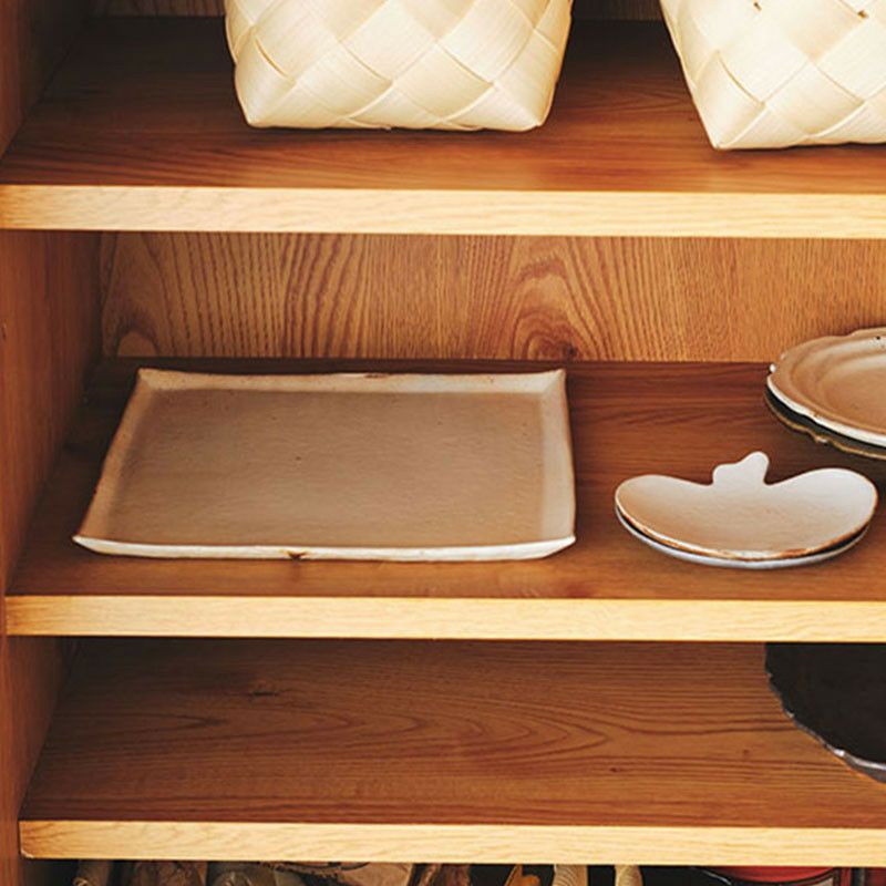 可動棚板が5枚ついており、約5cm間隔で調整可能。プレートやグラスはもちろん、棚板の間隔を調整すれば鍋類も収納できちゃいます。