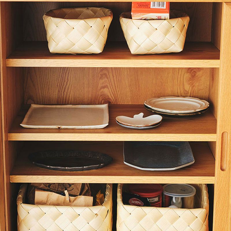 幅80cmに対して高さが約168cmと、少し"ずんぐり"したシルエットに仕上げています。これは、日本の伝統的家具「水屋箪笥」をデザインのルーツにしたから。