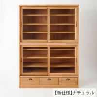 日本古来のデザインをベースにしながら、上・下段ともにクリアガラスの扉にすることで抜け感を出して圧迫感をなくし、スタイリッシュな印象に仕上げています。