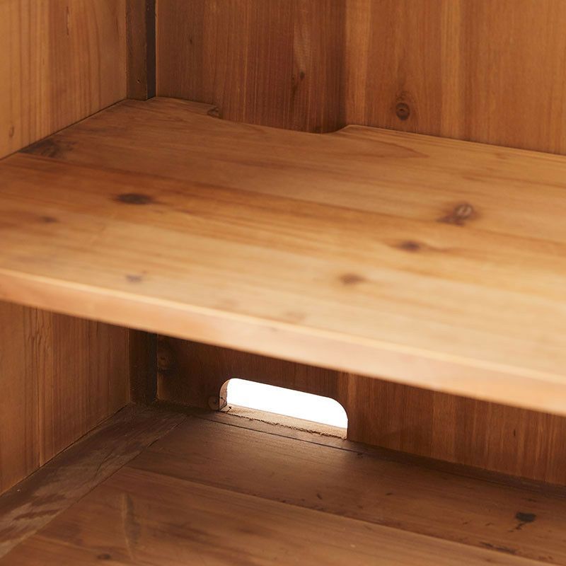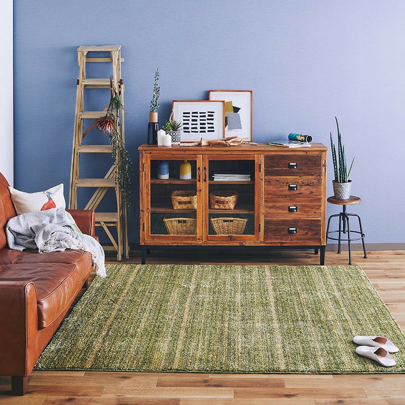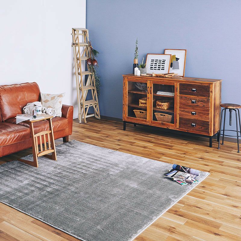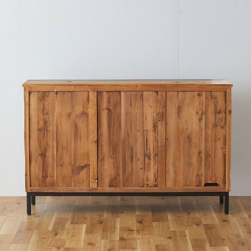 杉古材の無垢材をたっぷり使った、木の質感を存分に味わうことができるサイドボード。表面に現れた節、あえて残した使用跡などが味わい深い表情を見せています。スチールパーツとソリッドなガラスを組み合わせることによりカントリーな雰囲気に偏りすぎることなく、全体にシャープな印象を持たせています。リビングの主役になること間違いなしのサイドボードです。