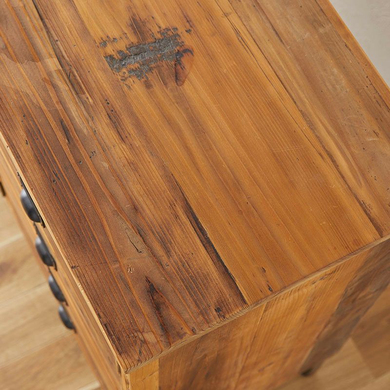 このサイドボードに使用している木材は、解体された古民家の梁や柱、門などに使われていた古材を洗浄、補修、乾燥、製材し材料としています。手間がかかっていますが、古材にしか出せない凹凸や濃淡があり、使うほどに味わいが出てきます。 独特の風合いを残すため、色ムラや釘跡、傷等をあえて残しています。同じものは一つとしてない、古材ならではの個性をお楽しみいただけます。