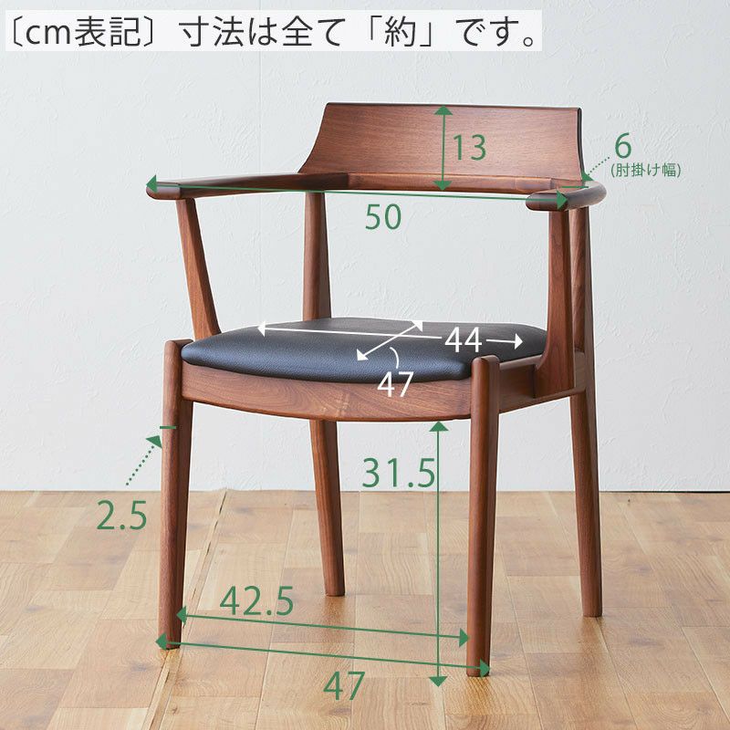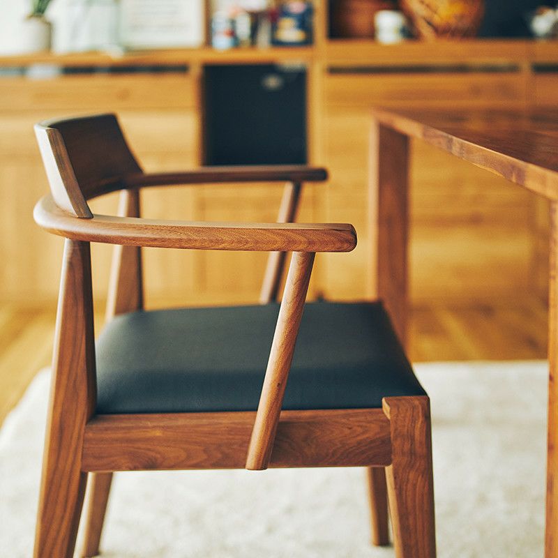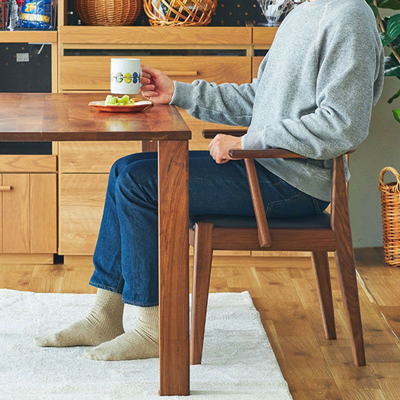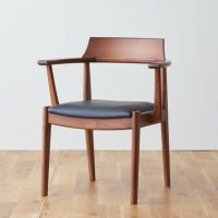 ウォールナット材を使用したダイニングチェア「MIMI」です。 背もたれと肘かけ付きのダイニングチェアは独立性が高く、 ダイニングテーブルでパーソナルエリアを確保しやすくなっています。