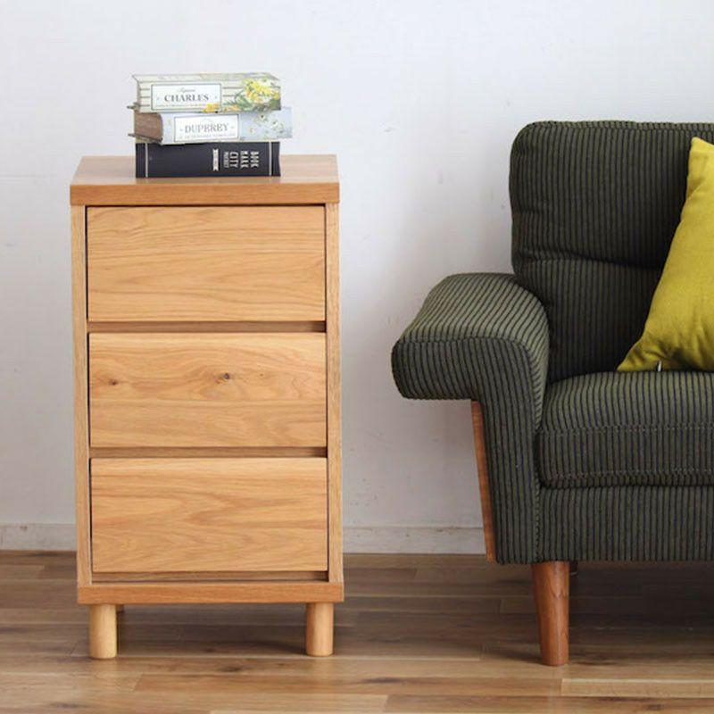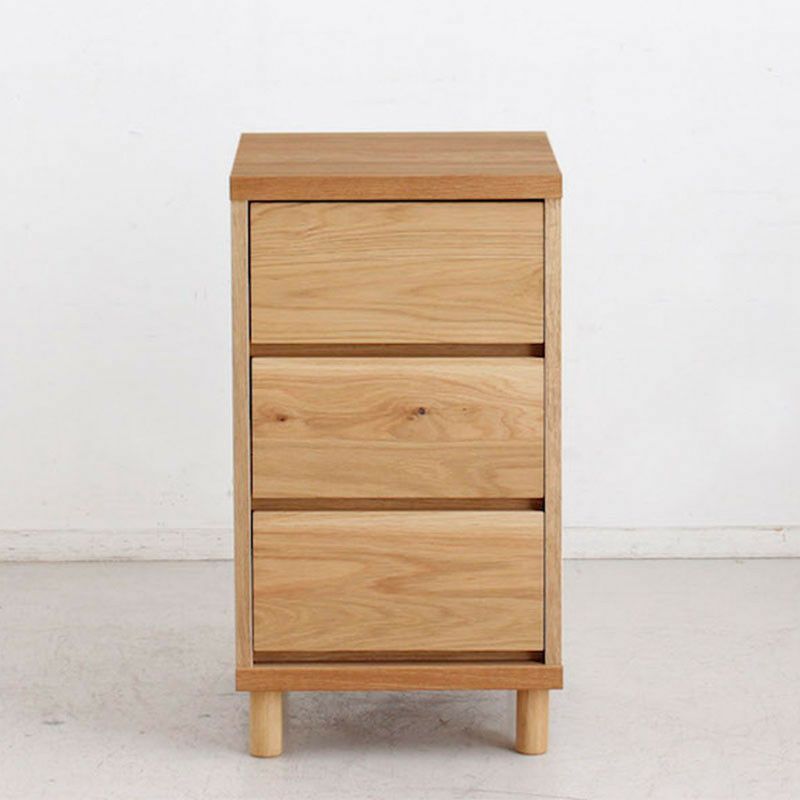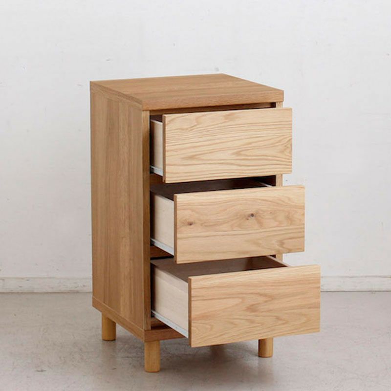 引き出し前板、天板にオーク無垢材を使用しています。無垢材ならではの木目や手触りを味わることができる優しい家具です。デザインは極力シンプルにすることで使う場所やコーディネートを気にすることなくお使いいただけます。