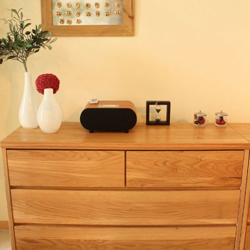引き出し前板、天板にオーク無垢材を使用しています。無垢材ならではの木目や手触りを味わることができる優しい家具です。デザインは極力シンプルにすることで使う場所やコーディネートを気にすることなくお使いいただけます。